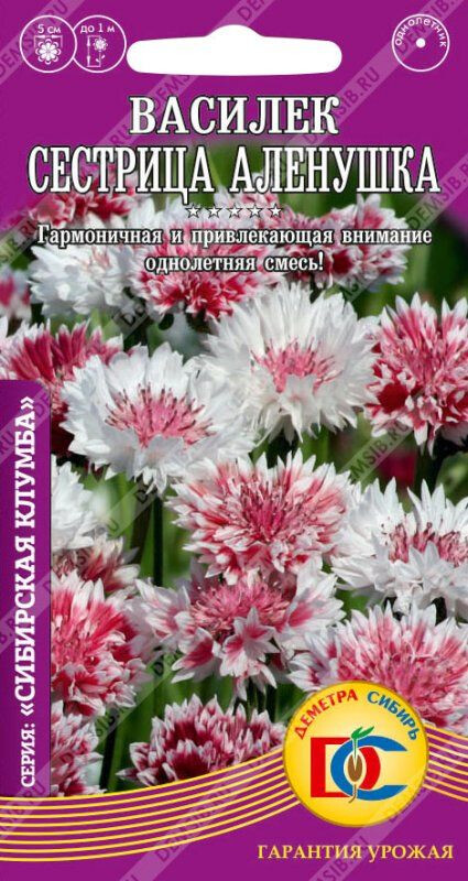 Удивительные васильки, очаровательных розовых оттенков - от белых до светло-розовых и бордовых, пестрят яркими и радостными красками, радуя красотой своих крупных соцветий с июля по сентябрь. Растения высокие 80-100 см, заслуживают почетного места на клумбе и срезанные в букете, сохраняя декоративность в течении 5-7 дней, демонстрируя свою красоту. Центр цветка тёмный, лепестки двухцветные: края белые к центру - тёмные. Отличный медонос, обладает рядом лекарственных свойств. Хорошо сочетается с иберисом, вербеной, лобулярией, гвоздикой китайской.