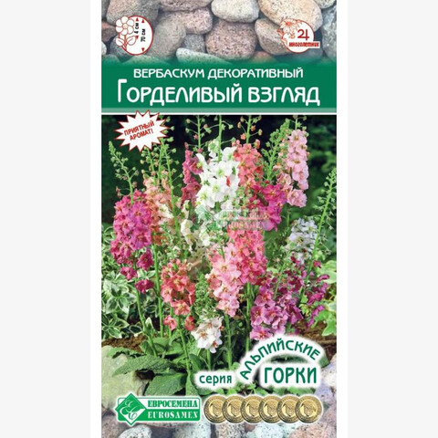 Verbascum phoeniceum Hybrids mixed Вербаскум, медвежье ухо, коровяк декоративный, огонь-трава, златоцвет, царский скипетр, атаман-трава, суконная плеть или свеча – все это одно и то же полукустарниковое, травянистое, цветущее многолетнее растение семейства Норичниковые. Оно способно создать целый букет даже из одного стебля с нарядным кистевидным соцветием, похожим на колос пшеницы и обладающим ощутимым нежным ароматом. Цветение длится почти весь сезон и приходится на период с мая по август. В этот период стебель почти на половину от своей вершины покрывается рядами бутонов, которые поочередно распускаются на один день и вечером отмирают. На следующий же день зацветают новые бутоны, формируя тем самым пышное и непрерывное цветение, обеспеченное многочисленными цветками различных ярких и нежных оттенков и колеров. Гибридные Коровяки хороши в садах пейзажного стиля. Высота растения-70 см Диаметр цветка-4 см