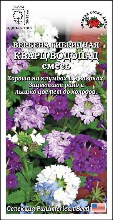Смесь представлена вербенами серии Кварц XP с соцветиями белого, синего, фиолетового и пурпурного цвета. Растения низкорослые, ветвистые, устойчивы к непогоде и болезням, зацветают очень рано и цветут обильно до холодов, однородны по высоте и времени цветения. Вербены данной серии хороши в одиночных посадках и в компании с другими цветами, прекрасно подходят для цветников и вазонов.