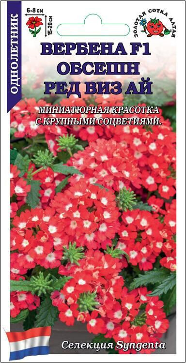 Серия миниатюрных вербен, зацветающих очень рано и обильно цветущих все лето даже при высокой плотности посадок. Растения компактные, отлично ветвятся и образуют пышные кустики шириной 40-60 см, прочные цветоносы не вытягиваются. Мелкие красные цветочки с белым глазком собраны в крупные шапки соцветий. Вербены серии Обсешн великолепны в цветниках, особенно хороши в кашпо, вазонах и ящиках.