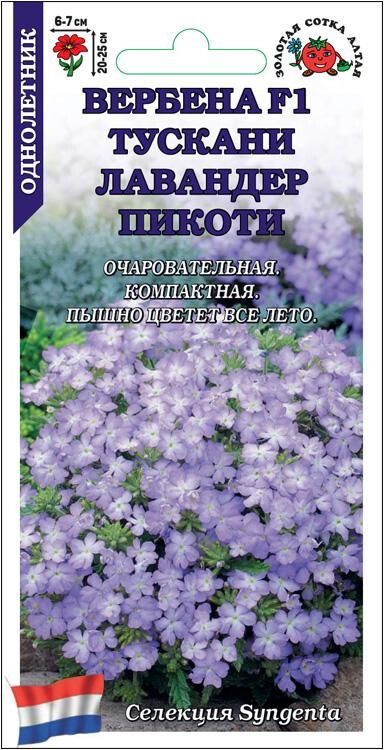 Очаровательная вербена, устойчивая к неблагоприятным условиям выращивания и пышно цветущая в течение всего лета. Кустики аккуратные, прямостоячие, компактные, с хорошим ветвлением. Миниатюрные цветочки двухцветной лавандово-белой окраски, собранные в соцветия-шары, обладают приятным ароматом. Вербены серии Tuscany используются в различных цветниках, великолепно подходят для контейнерного выращивания