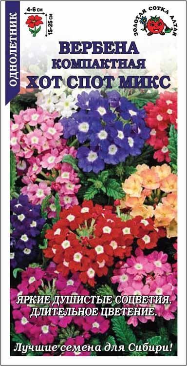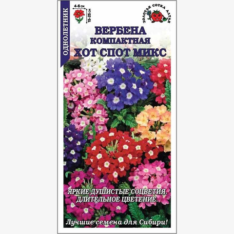 Смесь ярких и компактных сортов, цветущих обильно и длительно. Растение кустистое, полусферической формы. Мелкие душистые цветочки, собранные в крупные соцветия, представлены широкой гаммой оттенков: белые, розовые, красные, бордовые, темно-фиолетовые, часто с белым центром. Используют для оформления различных цветников, посадки в вазоны, горшки и балконные ящики.