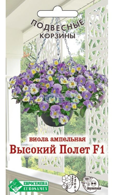Виола ампельная является декоративным растением, популярность которой растет год от года, существует достаточное количество причин, объясняющих высокую популярность данной культуры. Помимо эффектного внешнего вида, оправдывающего ожидания большинства эстетов, она может похвастать лёгкостью посадки и нетребовательностью в уходе, что, прежде всего, важно для начинающих цветоводов. Высокий полет - уникальная новинка от компании Benary с привлекательным шаровидным габитусом растений и невероятной мощью ветвления, обильным и продолжительным цветением, длительной жизнеспособностью и толерантностью к жаре. Идеальное растение для подвесных корзин, шикарно смотрится и в высоких вазонах, балконных ящиках. На гибких свисающих побегах образуется масса цветков невероятно освежающих окрасок, устойчивых к низким температурам и неблагоприятным погодным условиям.