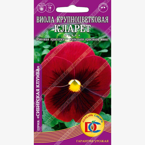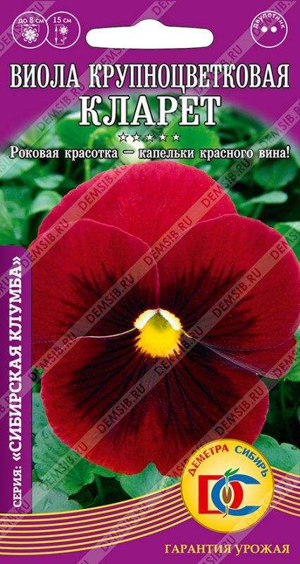 Неприхотливое популярное растение из семейства Фиалковые. Растение представляет собой компактны кустики высотой около 15 см. Цветки крупные, диаметром до 8 см, имеют насыщенный винно-красный цвет с черным пятном в центре соцветия. Данный сорт отличается обильным цветением, уникальным сладким ароматом и редкой способностью переносить заморозки.
