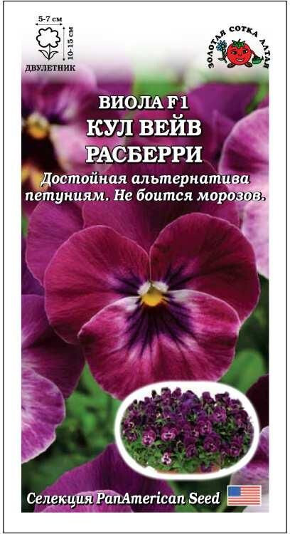 Восхитительная ампельная виола с ветвистыми побегами длиной до 30-40 см сплошь усыпана многочисленными цветками малинового цвета с белым центром. Виолы Кул вейв отличаются энергичным ростом и морозостойкостью, обильно цветут с мая по сентябрь, великолепны в вазонах и подвесных кашпо, подходят для альпинариев и ковровых цветников.