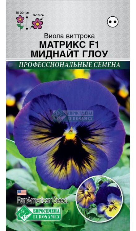 Viola wittrockiana F1 Matrix Midnight Glow Новая перспективная серия американской селекции с экстра - крупным размером цветка – одна из лучших в своем сегменте, выровненная по внешнему виду по сравнению с другими сериями, представленными на рынке. Виола серии Матрикс - отличный вариант для выращивания в холодном климате в условиях короткого светового дня. Огромные цветы, короткие крепкие стебли, которые даже в дождливую погоду удерживают крупные цветы над листвой, не давая им поникать. Хорошее ветвление позволяет формировать плотные кустики, растения не вытягиваются и формируют все больше цветков на каждом растении. Габитус растений остается максимально однородным в течение всего периода вегетации. Серия не имеет аналогов по длительности цветения. Длина дня и высокая летняя температура практически не влияют на цветение, если обеспечивается оптимальный водный режим. Отцветшие соцветия рекомендуется своевременно удалять. Виола Matrix - это идеальное растение для всех видов контейнеров, бордюров, клумб и альпийских горок. Это лучший выбор для профессионального цветочного оформления. Выдающаяся всхожесть и качество семенного материала!