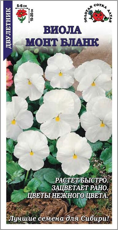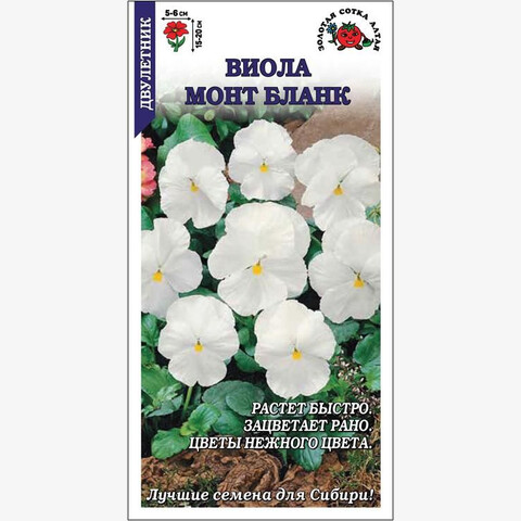 Серия Швейцарские гиганты. Очаровательная красотка с крупными кремово-белыми цветами. Сорт зимостойкий, неприхотливый, растет быстро, зацветает рано и цветет до осени, сохраняя прекрасный внешний вид. Виола отлично переносит пересадку в цветущем виде. Используется для создания цветников, великолепно смотрится в тротуарных вазах, подвесных горшках и ящиках.