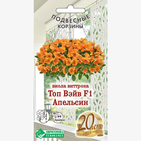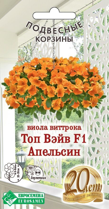 • Виола ампельная является декоративным растением, популярность которой растет год от года, существует достаточное количество причин, объясняющих высокую популярность данной культуры. Помимо эффектного внешнего вида, оправдывающего ожидания большинства эстетов, она может похвастать лёгкостью посадки и нетребовательностью в уходе, что, прежде всего, важно для начинающих цветоводов. Top Wave - новая уникальная серия виолы ампельной, зацветающей раньше аналогов и имеющая более крупный цветок. Топ Вэйв отличается прекрасным ветвлением, длиной побегов до 60-75 см, это чудесное растение для подвесных корзин, высоких вазонов и балконных ящиков. На гибких свисающих побегах образуется масса ярких цветов, устойчивых к низким температурам и неблагоприятным погодным условиям.