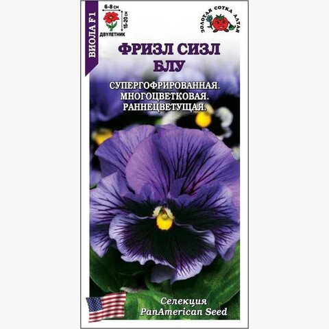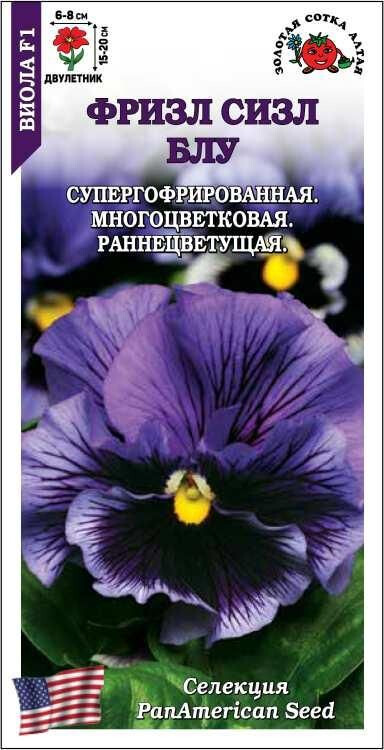 Виолы серии Фризл Сизл зацветают рано, цветут обильно и длительно, предпочитают легкую полутень и прохладу. Кустики компактные, объемные. Цветы многочисленные, крупные, супергофрированные, выразительного сине-фиолетового цвета с темным центром. Виолы используются для ландшафтного озеленения, красиво смотрятся в контейнерах.