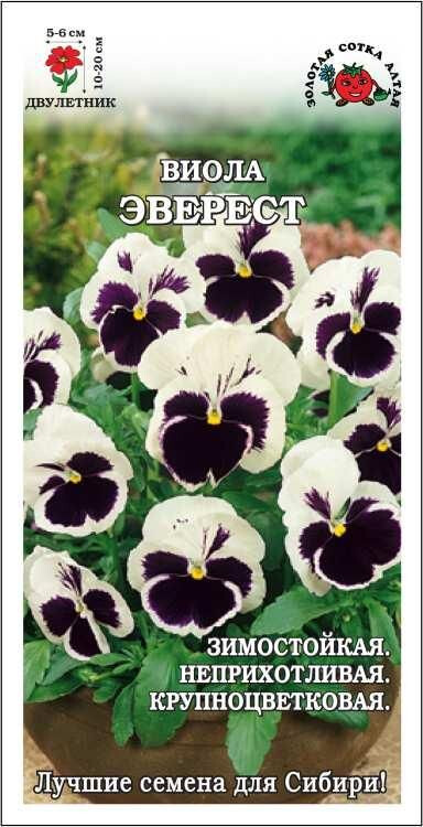Серия Швейцарские гиганты. Сорт зимостойкий, неприхотливый, растет быстро, зацветает рано и цветет все лето, сохраняя прекрасный внешний вид. Цветы крупные, многочисленные, белые с темным центром. Виола отлично переносит пересадку в цветущем виде. Используется для создания красочных цветников, великолепно смотрится в тротуарных вазах, подвесных горшках и ящиках.