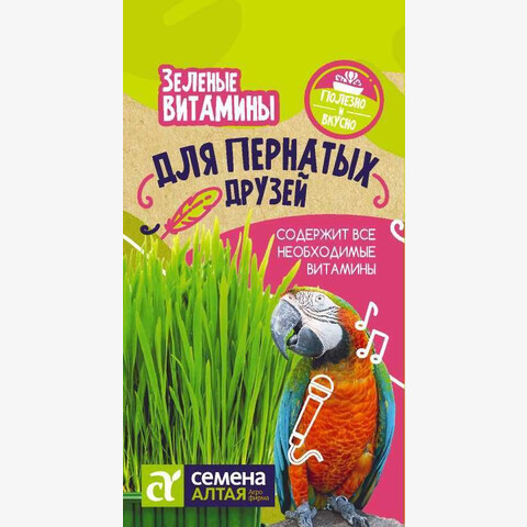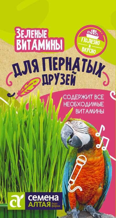 Оптимально подобранная злаковая смесь для пернатых питомцев, богатая витаминная добавка к корму. Свежая зелень благотворно влияет на их здоровье, особенно в период кладки яиц и выкармливания птенцов, улучшает общее здоровье и настроение птиц. Содержит необходимые витамины (А, С, группы В) и микроэлементы (натрий, магний), необходимый минерал кальций, аминокислоты и клетчатку. Выращенную зеленую траву для попугаев применяют в срезанном виде, чтобы не было доступа к почве и зернам, так как пернатые очень чувствительны к любым внешним факторам. Для посева используют емкости, высотой 6-8 см, слой грунта толщиной не менее 2-3 см. Во избежание быстрого пересыхания субстрата в грунт рекомендуется замешать 20-30% влагоудерживающих компонентов (перлит, вермикулит). Семена высевают в хорошо увлажненную почву, сверху присыпают слоем грунта 5 мм, накрывают пленкой и убирают в хорошо освещенное теплое место. После появления всходов пленку снимают, продолжая поливать и опрыскивать всходы по мере необходимости. Нельзя допускать пересыхания и перелива. Злаковые травы, отличаются быстрым ростом, через 10-14 дней после посева зелень готова к употреблению. После срезки всей зеленой массы в контейнере лучше провести пересев, так как трава отрастает медленно, становится менее сочной и более грубой.