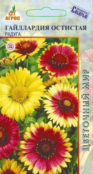 Гайллардия остистая – очень яркий красивый многолетник. Весной образует розетку из удлиненных листьев. В начале лета развиваются цветоносы, заканчивающиеся крупными красно-желтыми, красными, желтыми соцветиями-корзинками до 12 см в диаметре. Растения компактные высотой до 60 см. Гайллардия светолюбива, предпочитает легкие, сухие почвы, на влажных местах отстает в росте. Хорошо отзывается на подкормки. В конце сентября обрежьте под корень. На зиму следует слегка прикрыть листьями. На одном месте растет 3-4 года. Семена на рассаду высевают в марте-апреле или в открытый грунт в мае, возможны подзимние посевы. Всходы появляются через 14-20 дней. В грунт, на постоянное место, высаживают с мая по июль. Используется в группах, рабатках, миксбордерах. Прекрасно подходит для клумб и бордюров. Хорошо стоит в срезке. 60 III-IV IV-V,IX-X V-VII 40x40 VI-IX