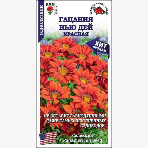 Гацании серии New Day компактны, отлично подходят для загущенных посадок, быстро растут, зацветают рано и держат цветок открытым до позднего вечера. Кустик крепкий, ветвистый. Огромные яркие соцветия с характерным темным кольцом вокруг центра не оставят равнодушными даже самых искушенных садоводов. Используют для оформления цветников и различных контейнеров в саду и на балконе.