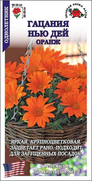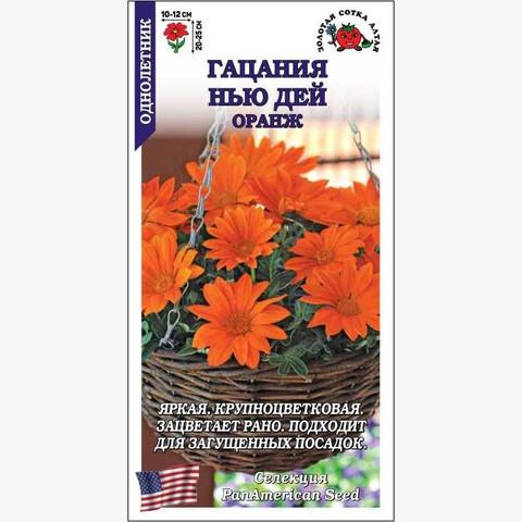 Гацании серии New Day отлично подходят для загущенных посадок, быстро развиваются, зацветают рано, цветут обильно и продолжительно. Кустик компактный, крепкий, хорошо ветвится. Очень крупные соцветия-корзинки красивого ярко-оранжевого цвета остаются открытыми до позднего вечера. Используют для оформления цветников, а также контейнеров в саду и на балконе.