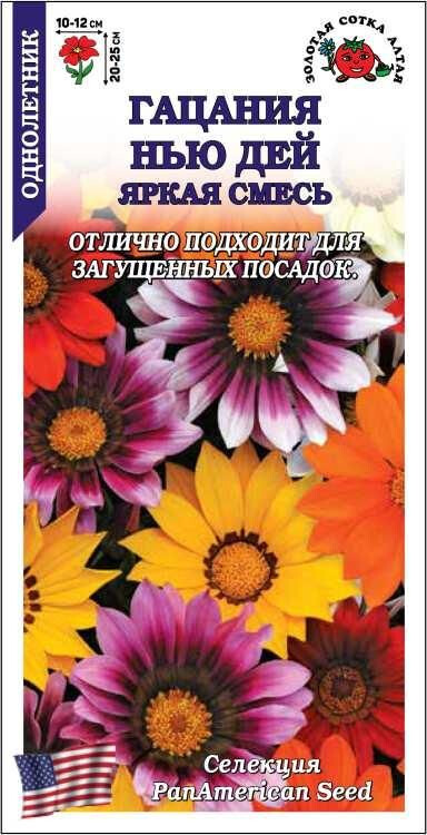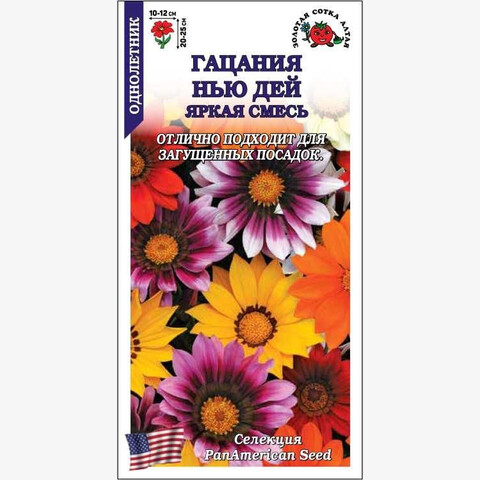 Гацании серии New Day компактны, отлично подходят для загущенных посадок, быстро развиваются, зацветают рано и долго держат цветок открытым. Кустик крепкий, хорошо ветвится. Соцветия-корзинки очень крупные, разнообразной яркой окраски: однотонной и двухцветной, с темным кольцом вокруг центра. Используют для оформления цветников, а также контейнеров в саду и на балконе.