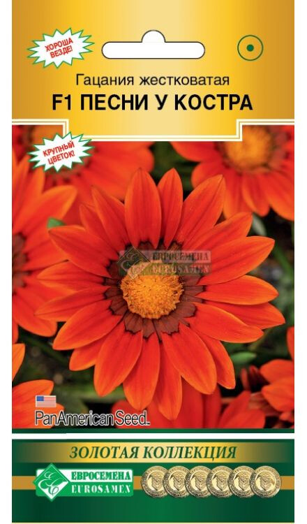 Гацания жестковатая – популярное и простое в уходе растение, получившее название от имени греческого философа и гуманиста Теодора Газы. С июля до первых морозов она осыпана яркими цветами, напоминающими миниатюрные герберы, растет в естественной среде в Южной Африке и Австралии, принадлежит к семейству Астровые. Благодаря экзотическому происхождению и внешнему сходству с ромашкой, ее называют африканской ромашкой. Подобно ромашке, подходит для групповых посадок, в том числе для многолетних композиций. Сорт Песни у Костра- отличается компактностью растений при сохранении крупного размера цветка и высокой производительностью соцветий, не вытягивается. Цветок с бронзово-красным окрасом лепестков и темным основанием, образующим кольцо вокруг центра. Хорошо смотрится в самой разной посуде: цветочных горшках, оконных ящиках и является отличным украшением альпинариев, рокариев и бордюров.