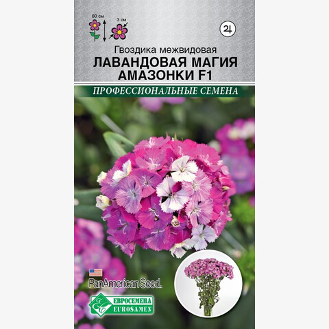 Среди садоводов очень популярны различные сорта и виды гвоздик. Любовь к ним объясняется продолжительностью их цветения и очень яркой окраской. Растения исключительно декоративны. Неприхотливость в уходе, устойчивость к неблагоприятным погодным условиям сделали их желанными гостями на садовом участке и городских клумбах. Сортовое многообразие в настоящее время превысило уже три сотни данной культуры. Межвидовая гвоздика серии Амазон поражает своей стройной формой растения, уникальной формой цветков с зазубренным краем и безупречной чистотой их окраса. Каждая гвоздика этой сорта - подарок природы, который добавляет букетам изысканности и делает их поистине королевскими. Ее бутоны равномерно раскрываются и воплощают в себе идеал симметрии, создавая великолепный и гармоничный вид, становятся неповторимым шедевром в каждой композиции. Вначале раскрывшиеся цветки имеют белую окраску, но постепенно они становятся бледно-лиловыми. Для лучшего, более яркого окраса, рекомендуется выращивать гвоздику под стеклом или под прямыми солнечными лучами, что сделает цветок более приглушенного цвета. Зацветает в год посева, не требуя периода яровизации.