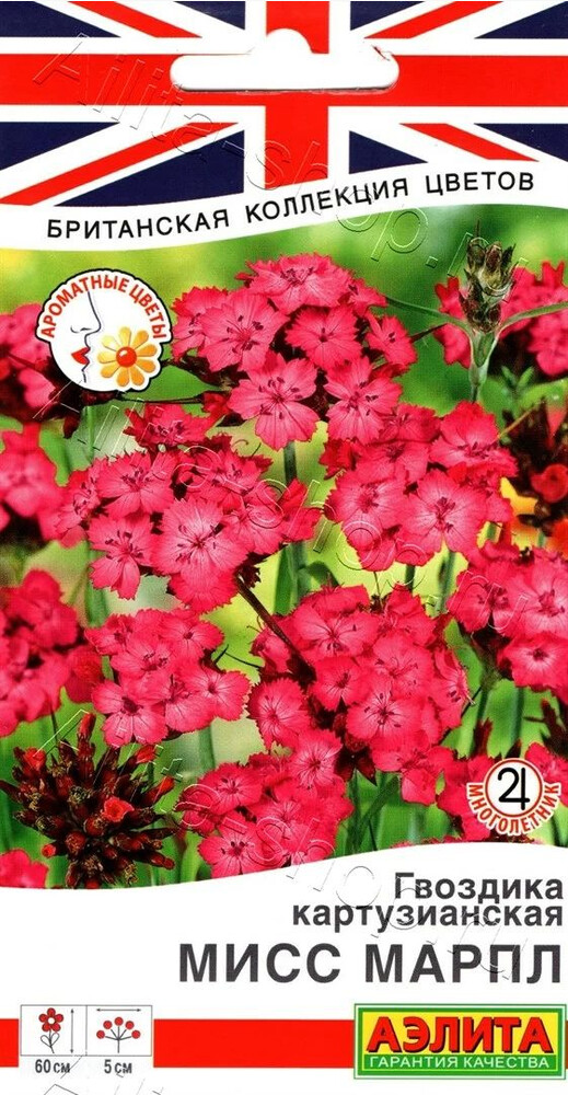 Многолетняя, зимостойкая гвоздика. Вид назван в честь ордена картузианцев, монастыри которого она украшала с давних времен. Растения утонченные, изящные, но при этом крепкие и выносливые. Высотой до 60 см, с длинными, узкими листьями. Темно-розовые цветки с остро-зубчатым краем собраны в головчатые соцветия Ø 4-5 см. В каждом – по 6-14 штук. Сорт пред почитает цветники солнечного местоположения, привлекая бабочек. Отлично растет у подножия альпийской горки и в каменистых садиках. Подходит для срезки.