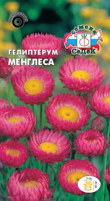 Однолетнее травянистое растение, культивируемое как сухоцвет. Имеет раскидистый кустик высотой 40 см, с зелеными продолговатыми листьями. Соцветия – корзинки, диаметром 3 см, на длинных цветоносах. Цветки трубчатые, окаймлены несколькими рядами сухих розовых язычковых цветков, похожих на чешуйки. Растение светолюбивое, холодостойкое. Предпочитает супесчаные слабокислые почвы. Мелкие легкие корзинки на тонком цветоносе великолепны для срезки и для использования в зимних букетах. Оптимальная для прорастания семян температура почвы 16-18°С.