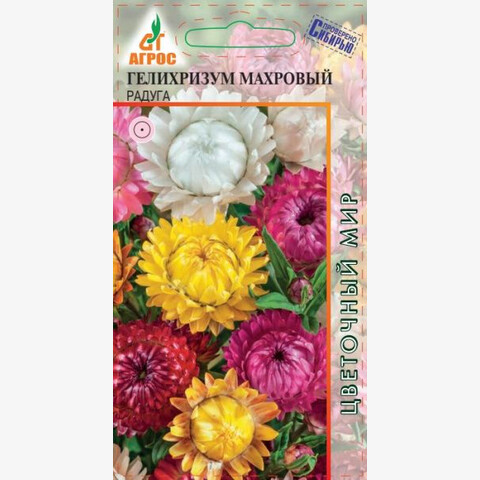 Однолетник. На каждом слегка раскидистом растении около 25 крупных (диаметром 6-8 см) блестящих соцветий разнообразных окрасок и оттенков. По краю соцветий располагаются прицветники, создающие впечатление махровости. Семена на рассаду высевают в апреле или на постоянное место в открытый грунт в мае. Всходы появляются на 10-20 день. Гелихризум светолюбив, хотя может выносить небольшое затенение, холодостоек, засухоустойчив. Предпочитает питательные рыхлые почвы. Чтобы соцветия не мельчали – необходим полив в сухую погоду. Гелихризумы хороши для посадки в клумбы и рабатки, так же этот великолепный сухоцвет, незаменим для зимних букетов. 100 IV V; IX-X V-VI 25-30 VII-IX