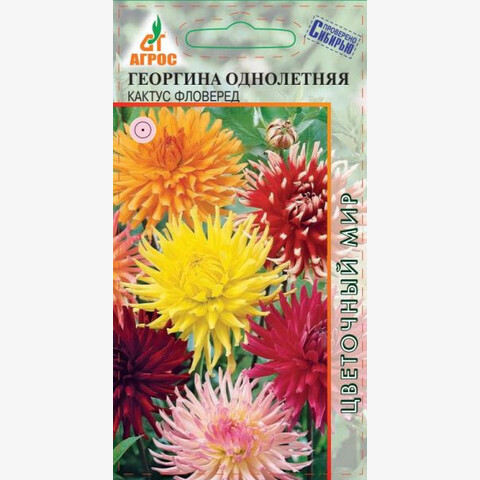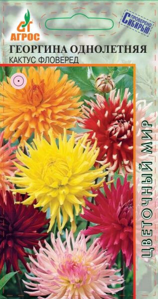Многолетник, выращиваемый как однолетник. Кактусовые (игольчатые) георгины являются самыми эффектными из всех георгин. Соцветия их очень привлекательны и ярки. Растение сильноветвящееся, с соцветиями-корзинками диаметром 12-15 см, разнообразных окрасок. Георгина очень теплолюбива, любит плодородные влажные почвы и солнечные участки. Необходимы своевременное рыхление почвы, в жаркое время обильный полив и периодические подкормки комплексными минеральными или органическими удобрениями раз в 10-15 дней. В августе подкормки прекращают. Зацветают георгины в первой половине июля и цветут до заморозков. Семена на рассаду высевают с первой половины апреля. При температуре 18-20 °С всходы появляются через 10-14 дней. В открытый грунт высаживают, когда минует угроза заморозков. Самые интересные растения можно сохранить, выкопав клубни и сохраняя их в течение зимы при температуре 4-5 °С. Георгины высаживают на клумбах, рабатках, массивах, а также можно выращивать в контейнерах и балконных ящиках. 60-70 IV-V - V-VI 25x25 VII-IX
