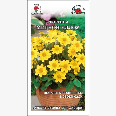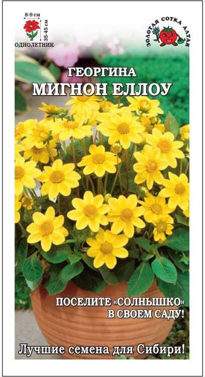 Георгины Мигнон отличаются компактным, хорошо ветвящимся кустом, обильным и непрерывным цветением до заморозков, с успехом выращиваются в кашпо, вазонах, оконных и балконных ящиках. Крупные простые соцветия солнечно-желтого цвета – прекрасное украшение цветников на приусадебных участках, в городских парках и скверах.