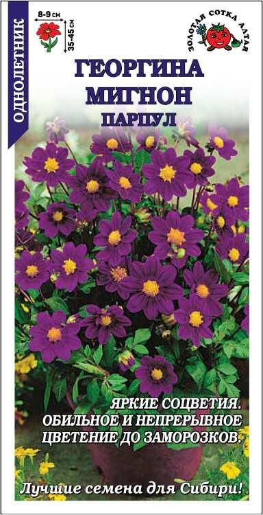 Георгины серии Мигнон компактны, хорошо ветвятся и непрерывно цветут до заморозков. Крупные простые соцветия красивого пурпурного цвета приводят в восторг и вызывают восхищение даже у самых требовательных цветоводов. Сорт используется для создания бордюра, клумб и рабаток, с успехом применяется в кашпо, вазонах, оконных и балконных ящиках.