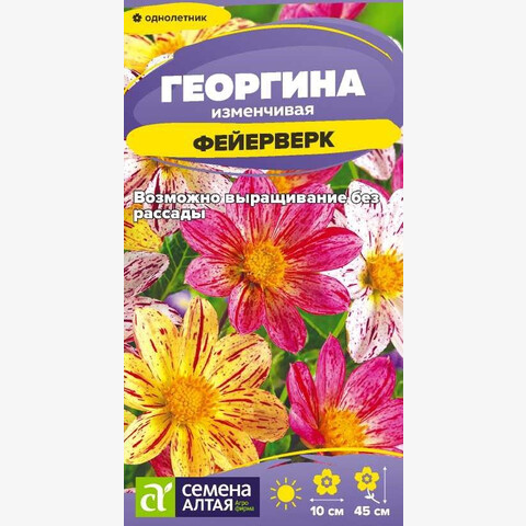 Оригинальная смесь немахровых георгин с художественной раскраской лепестков. Растения компактные, 35-45 см высотой. Соцветия многочисленные крупные, до 10 см диаметром. В окраске язычковых цветков основной фон (белый, розовый, кремовый, сиреневый) раскрашен контрастными по цвету штрихами. Обладая особой красотой и изяществом, это растение придаст шарм любой цветочной композиции. Свето- и теплолюбивое растение. Предпочитает открытые солнечные участки с питательной суглинистой почвой, защищенные от ветра, но с хорошей циркуляцией воздуха. Выращивают как рассадным способом, так и прямым посевом семян в грунт. На рассаду семена высевают в конце марта - апреле. Для посева подойдет лёгкий воздухопроницаемый грунт, можно смешать обычный грунт из огорода с чистым песком, перлитом и вермикулитом. Грунт обязательно дезинфицируют: прокаливают в духовке, либо проливают раствором марганцовки или фунгицида. Можно сеять как в рассадные контейнеры, так и в отельные торфяные или одноразовые стаканчики. В последнем случае рассаду не надо пикировать. Семена высевают с интервалом 3-4 см, сверху заделывают грунтом, который слегка уплотняют, глубина заделки – 0,5 см. Посевы увлажняют теплой водой из пульверизатора и накрывают пленкой. Рассадные емкости помещают в светлое теплое место. Ежедневно пленку снимают для проветривания посевов и удаления конденсата. При температуре почвы +18-20°С всходы появляются на 7-14 день. Сеянцы пикируют в фазе двух настоящих листочков. Высадку рассады в открытый грунт проводят в июне, когда минует угроза возвратных заморозков. Посадочный интервал 25-30 см. Возможен прямой посев семян в открытый грунт в мае, но при этом цветение будет более поздним. Цветение длительное, с июня до осенних холодов. Для продления цветения увядшие цветки рекомендуется удалять.