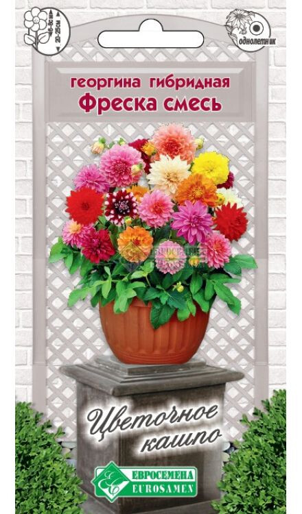 Трудно найти садовода, который бы равнодушно относился к георгинам. Что же касается продолжительности цветения, то георгина не имеет себе равных. Фреско -мега популярный гибрид георгина с полностью махровыми цветками ярких разнообразных окрасок, расположенных над невысокими, аккуратными, густо облиственными кустиками, выровненными и однородными по габитусу и времени цветения. Пламенная игра цветков, переливающихся на солнце, сразу привлекает внимание и взгляды покупателей. Цветущие кусты георгин производят ошеломляющий эффект. Даже в пасмурные дни будет дарить вам отличное настроение и радость от общения с ним. Эта культура способна украсить любой цветник и самый скромный уголок сада. Георгины великолепны в контейнерах, кашпо и вазонах, бордюрах и клумбах. Рекомендуется для групповой посадки.