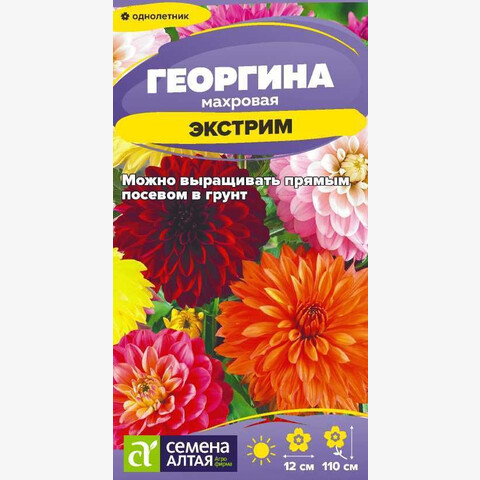 Великолепная смесь высокорослых георгин с крупными соцветиями диаметром 10-12 см. Растение формирует прямостоячие ветвистые кусты, высотой до 110 см, с множеством цветоносов. Соцветия махровые и полумахровые ярких радостных окрасок. Широко используется в декорировании цветников, миксбордеров, очень эффектна в одиночных посадках. В срезке сохраняет декоративность до 2 недель. Свето- и теплолюбивое растение. Предпочитает открытые солнечные участки с питательной суглинистой почвой, защищенные от ветра, но с хорошей циркуляцией воздуха. Выращивают как рассадным способом, так и прямым посевом семян в грунт. На рассаду семена высевают в конце марта - апреле. Для посева подойдет лёгкий воздухопроницаемый грунт, можно смешать обычный грунт из огорода с чистым песком, перлитом и вермикулитом. Грунт обязательно дезинфицируют: прокаливают в духовке, либо проливают раствором марганцовки или фунгицида. Можно сеять как в рассадные контейнеры, так и в отельные торфяные или одноразовые стаканчики. В последнем случае рассаду не надо пикировать. Семена высевают с интервалом 3-4 см, сверху заделывают грунтом, который слегка уплотняют, глубина заделки – 0,5 см. Посевы увлажняют теплой водой из пульверизатора и накрывают пленкой. Рассадные емкости помещают в светлое теплое место. Ежедневно пленку снимают для проветривания посевов и удаления конденсата. При температуре почвы +18-20°С всходы появляются на 7-14 день. Сеянцы пикируют в фазе двух настоящих листочков. Высадку рассады в открытый грунт проводят в июне, когда минует угроза возвратных заморозков. Посадочный интервал 30-40 см. Возможен прямой посев семян в открытый грунт в мае, но при этом цветение будет более поздним. Цветение длительное, с июня до осенних холодов. Для продления цветения увядшие цветки рекомендуется удалять.