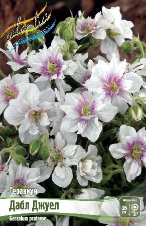 Герань Дабл Джуел (pratense) — это великолепное растение, которое украсит любой сад или балкон. Его крупные, махровые цветы имеют насыщенный фиолетовый цвет с белыми пятнами в центре, что создает эффектный контраст. Листья растения темно-зеленые, с зубчатыми краями, что придает ему дополнительную декоративность. Герань Дабл Джуел неприхотлива в уходе и хорошо переносит засуху, что делает ее идеальным выбором для начинающих садоводов. Она также устойчива к болезням и вредителям, что позволяет наслаждаться ее красотой без лишних хлопот. Герань Дабл Джуел отлично подходит для выращивания в контейнерах, клумбах и бордюрах. Она привлекает внимание своей яркостью и пышностью цветения, которое длится с июня по сентябрь. Это растение станет настоящим украшением вашего сада и подарит вам радость от наблюдения за его цветением.