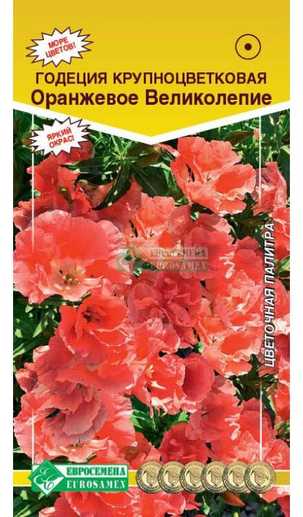 Годеция – эффектный яркий цветок, создающий в саду особый южный колорит. Это растение никогда не останется незамеченным, настолько красивы его нежные, красочные бутоны, напоминающие воланчики. Сама по себе культура весьма выразительна, она акцентирует на себе внимание и служит отличным украшением цветника. При всей своей красоте годеция некапризна и пригодна для выращивания даже в северных регионах России. Оранжевое Великолепие- сорт с чашевидными, шелковисто-яркими цветочками, окутывающими цветник легким облачком. Выносливое, отличающееся быстрым ростом растение с крупными, нарядными, атласными цветками порадует Вас обильным и длительным цветением с июня до заморозков. Широко применяется для оформления балконных и оконных ящиков, рабаток, бордюров. Идеально сочетается с невысокими белыми флоксами или белой ампельной петунией.