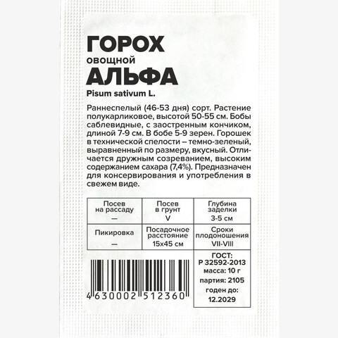 Горох Альфа/Сем Алт/бп 10 гр.