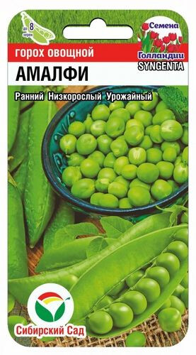 Ранний, Низкорослый, Урожайный! Раннеспелый очень урожайный, дружносозревающий сорт голландской селекции. Созревает на 46-55 день после появления всходов. Характеризуется очень коротким стеблем и ранним заложением первых стручков. Можно выращиваться без подвязки. Средняя высота растения 45-55 см. В узле формируется по 2 стручка. Бобы слабоизогнутые, с тонким пергаментным слоем, узкие, с тупой верхушкой, длиной до 8 см. Высота прикрепления первых бобов 22 см. В стручке формируется по 7-8 горошин тёмно-зелёного цвета. Вкусовые качества свежих зерен хорошие и отличные.Сорт рекомендуется для свежего потребления и переработки (консервирования и заморозки). Обладает высокой устойчивостью к болезням. Урожайность - 46-80 ц/га.