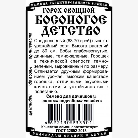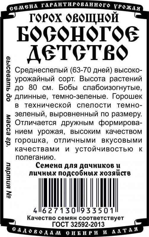 Среднеспелый (63-70 дней) высокоурожайный сорт. Высота растений до 80 см. Бобы слабоизогнутые, длинные, темно-зеленые. Горошек в технической спелости темно-зеленый, выровненный по размеру. Отличается дружным формированием урожая, высоким качеством горошка, отличными вкусовыми качествами и устойчивостью к полеганию.