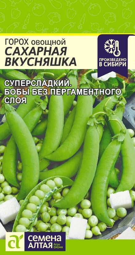 Суперсладкий сахарный сорт гороха. Среднепоздний (50-60 дней от всходов до первого сбора). Бобы длиной 7-9 см, с 7-9 горошинами. Сорт ценится за отсутствие в стручках пергаментной оболочки. В пищу используют целиком сочные, мясистые очень сахаристые бобы. Рекомендуется для потребления в свежем виде, замораживания и консервации. Место посадки: предпочитает плодородные очень легкие и легкие почвы с нейтральной или слабокислой реакцией. Очень важна хорошая аэрация и обеспеченность влагой в течение вегетации. Горох накапливает в почве азот, поэтому их можно располагать на истощенных почвах, после картофеля, моркови, лука, томатов Освещение: предпочитает солнечные участки Предпосевная подготовка: не требуется, возможно замачивание на сутки Сроки посева: начало мая, когда температура почвы прогреется выше 5°С Посев на рассаду: не предусмотрено Посев в грунт: высевают в открытый грунт в начале мая. Глубина заделки семян составляет 3-4 см на тяжелых и 4-5 см на легких почвах. Семена прорастают при температуре 2-5°С, всходы выдерживают кратковременные заморозки до -6°С. Расстояние между растениями не менее 15 см, между рядками 45 см Пикировка/перевалка: не требуется, сеют сразу в грунт Уход: полив регулярный, обильный. Обязательно бороться с сорняками, особенно вьющимися. Для высокорослых сортов рекомендуется создавать опору