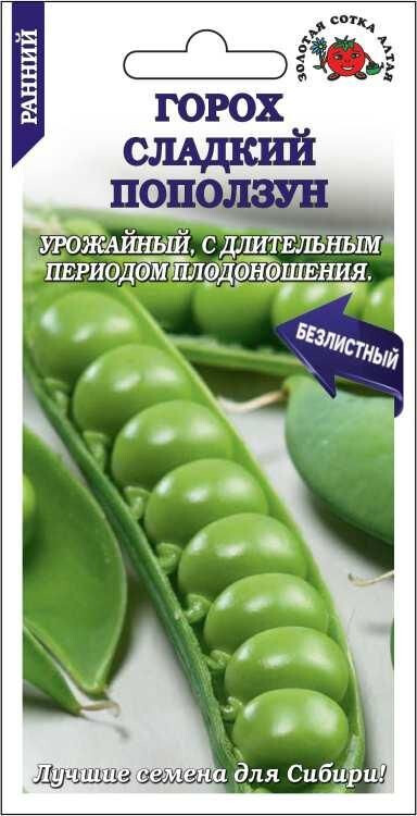 Раннеспелый урожайный сорт усатой (безлистной) формы. Период отвсходов до созревания 53-55 дней. Растение высотой 70-85 см. Бобы зеленые, слабоизогнутые, средней длины. Горошек крупный, сочный и очень сладкий. Сорт рекомендуется для использования в свежем виде,консервирования и замораживания. Ценится за длительный период плодоношения и отличные вкусовые качества.