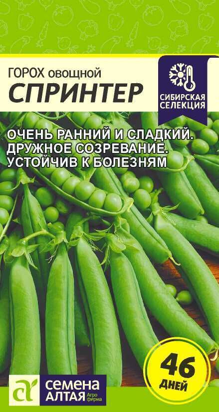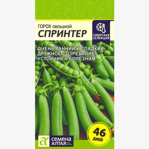Очень ранний (46-57 дней), урожайный лущильный сорт. Высота растения - 55-70 см. Боб слабоизогнутый, средней длины. Горошек выровненный, зеленый, великолепного вкуса. Отличается дружным созреванием и устойчивостью к заболеваниям. Место посадки: предпочитает плодородные очень легкие и легкие почвы с нейтральной или слабокислой реакцией. Очень важна хорошая аэрация и обеспеченность влагой в течение вегетации. Горох накапливает в почве азот, поэтому их можно располагать на истощенных почвах, после картофеля, моркови, лука, томатов Освещение: предпочитает солнечные участки Предпосевная подготовка: не требуется, возможно замачивание на сутки Сроки посева: начало мая, когда температура почвы прогреется выше 5°С Посев на рассаду: не предусмотрено Посев в грунт: высевают в открытый грунт в начале мая. Глубина заделки семян составляет 3-4 см на тяжелых и 4-5 см на легких почвах. Семена прорастают при температуре 2-5°С, всходы выдерживают кратковременные заморозки до -6°С. Расстояние между растениями не менее 15 см, между рядками 45 см Пикировка/перевалка: не требуется, сеют сразу в грунт Уход: полив регулярный, обильный. Обязательно бороться с сорняками, особенно вьющимися. Для высокорослых сортов рекомендуется создавать опору