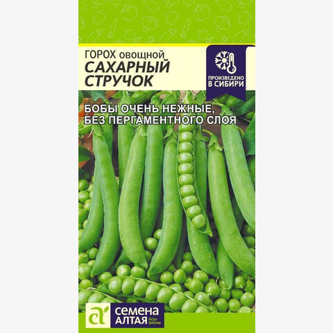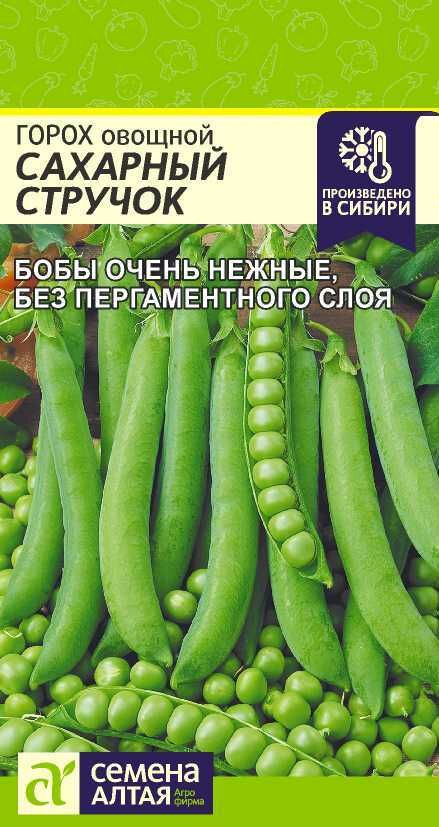 Среднеспелый высокоурожайный сахарный сорт. Высота растения 70 см, число соцветий 13-15. Длина боба 10 см, в бобе 7-10 горошин. Зеленые бобы очень нежные, без кожистого пергаментного слоя. В пищу идет целиком зеленый боб. Пригоден для консервирования. Сорт устойчив к фузариозу, мучнистой росе и засушливым условиям. Место посадки: предпочитает плодородные очень легкие и легкие почвы с нейтральной или слабокислой реакцией. Очень важна хорошая аэрация и обеспеченность влагой в течение вегетации. Горох накапливает в почве азот, поэтому их можно располагать на истощенных почвах, после картофеля, моркови, лука, томатов Освещение: предпочитает солнечные участки Предпосевная подготовка: не требуется, возможно замачивание на сутки Сроки посева: начало мая, когда температура почвы прогреется выше 5°С Посев на рассаду: не предусмотрено Посев в грунт: высевают в открытый грунт в начале мая. Глубина заделки семян составляет 3-4 см на тяжелых и 4-5 см на легких почвах. Семена прорастают при температуре 2-5°С, всходы выдерживают кратковременные заморозки до -6°С. Расстояние между растениями не менее 15 см, между рядками 45 см Пикировка/перевалка: не требуется, сеют сразу в грунт Уход: полив регулярный, обильный. Обязательно бороться с сорняками, особенно вьющимися. Для высокорослых сортов рекомендуется создавать опору