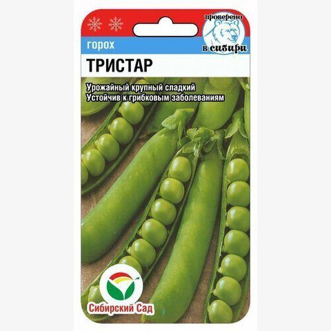 Среднеспелый урожайный сорт с вкусными сладкими горошинами. Период от полных всходов до начала технической спелости горошин 57-61 день. Растение высотой 70-80 см. Бобы крупные, длиной 70 мм, широкие, темно-зеленые. В стручке до 8 крупных сладких зеленых горошин, выровненных по размеру. Отличные вкусовые качества. Сорт рекомендован для употребления в свежем виде, замораживания и консервирования. Посев гороха в открытый грунт производится в апреле-мае по схеме 15х30 см.