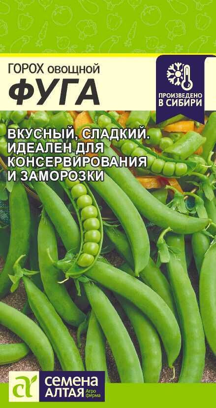 Среднеспелый (55-64 дня) мозговой сорт с дружным созреванием сладкого горошка. Растение кустовое, высотой 50-60 см. Боб лущильный, прямой, с заостренной вершиной, темно-зеленый, длиной до 9 см, в бобе 9-12 зёрен. Вкусовые качества свежего и консервированного горошка хорошие и отличные. Рекомендуется для консервирования и потребления в свежем виде. Место посадки: предпочитает плодородные очень легкие и легкие почвы с нейтральной или слабокислой реакцией. Очень важна хорошая аэрация и обеспеченность влагой в течение вегетации. Горох накапливает в почве азот, поэтому их можно располагать на истощенных почвах, после картофеля, моркови, лука, томатов Освещение: предпочитает солнечные участки Предпосевная подготовка: не требуется, возможно замачивание на сутки Сроки посева: начало мая, когда температура почвы прогреется выше 5°С Посев на рассаду: не предусмотрено Посев в грунт: высевают в открытый грунт в начале мая. Глубина заделки семян составляет 3-4 см на тяжелых и 4-5 см на легких почвах. Семена прорастают при температуре 2-5°С, всходы выдерживают кратковременные заморозки до -6°С. Расстояние между растениями не менее 15 см, между рядками 45 см Пикировка/перевалка: не требуется, сеют сразу в грунт Уход: полив регулярный, обильный. Обязательно бороться с сорняками, особенно вьющимися. Для высокорослых сортов рекомендуется создавать опору