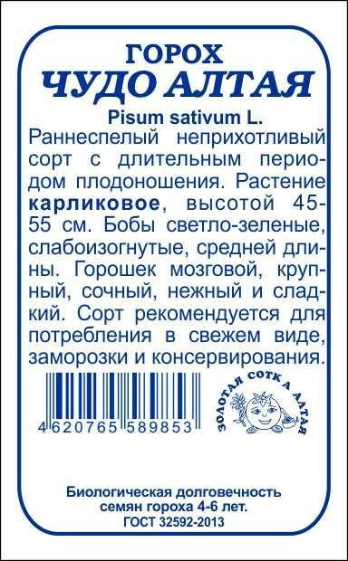 Раннеспелый неприхотливый сортс длительным сроком плодоноше-ния. Растение карликовое, высотой45-55 см. Бобы светло-зеленые,слабоизогнутые, средней длины.Горошек мозговой, крупный, сочный,нежный и сладкий. Сорт рекоменду-ется для непосредственного потре-бления, используется в кулинарии,для заморозки и консервирования.