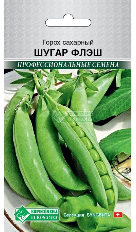 Горошек сахарный совершенно уникальная овощная культура, которая по питательной ценности и наличию всех незаменимых аминокислот максимально приближена к трём китам, составляющим основу нашего питания, — молоку, яйцам и мясу. В горохе идеально сбалансированы не только белки, но и витамины группы В, содержание которых в 1,5-2 раза больше, чем в хлебе. Так что зелёный горошек — это не просто вкусная забава, но и очень полезный продукт, вырастить который на грядке не составляет никакого труда. Шугар Флэш- среднеспелый высокоурожайный сорт сахарного гороха от компании Syngenta с высокой устойчивостью к полеганию. От всходов до технической спелости и сбора урожая 65-70 дней. Стебель прямостоячий, бобы без пергаментного слоя, длиной 8-10см с 7-8 сладкими горошинами диаметром 9,1-10,3 мм. Отличается высокими вкусовыми качествами, длительной отдачей урожая, сохранением сладости при перезревании, болезнеустойчивостью. Горох пригоден для свежего потребления, консервации и заморозки. Регулярный сбор урожая стимулирует рост новых бобов.