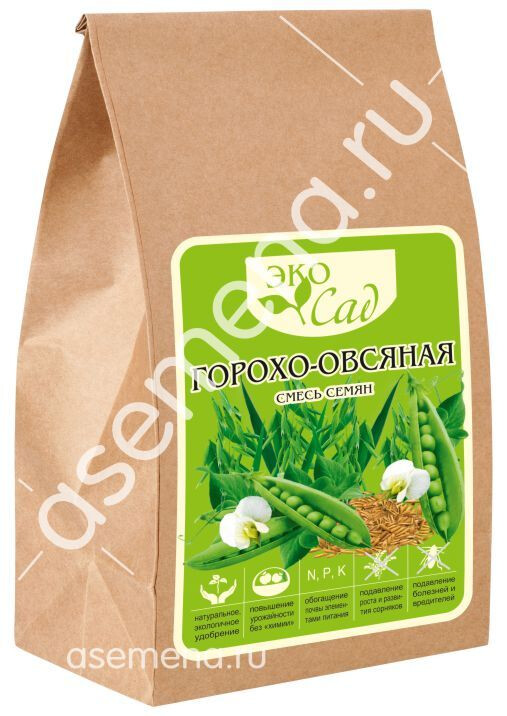 • После разложения в земле биомасса становится легкоусвояемым для растений удобрением. Почва пополняется органикой, гумусом, азотом, фосфором, калием и полезными микроэлементами. Корневая система горохо-овсяной смеси отлично разрыхляет почву, улучшая воздухо - и влагообмен , создает благоприятные условия для жизнедеятельности почвенных микроорганизмов, что приводит к уменьшению заболеваемости растений и повышению урожайности. Отличный предшественник для культур, которым нужно много азота (картофель, капуста, морковь, свекла, лук). За счет обильной зеленой массы смеси с единицы площади дают значительно больший сбор питательных веществ, чем злаки и бобовые отдельно.