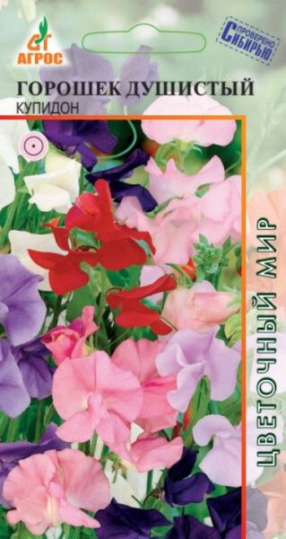 Однолетнее низкорослое растение. Цветки крупные, диаметром 3-4 см, разнообразной окраски. Обладает неповторимым ароматом, цветение обильное и продолжительное. Семена перед посевом нужно на сутки замочить в горячей воде (50°С) и подержать во влажной среде (мокрый песок, опилки) в течение 2-3-х дней. Растения, достигнувшие 10 см в высоту, необходимо прищипнуть для лучшего кущения. Это быстрорастущее растение светолюбиво, холодостойко и влаголюбиво. Для посадки необходимо выбирать защищенные от ветра места. Горошек душистый идеален для посадки с южной стороны оград, беседок; великолепен для создания специальных форм в цветниках или на фоне газона; также хорош и для срезки. 20-30 III-IV V V-VI 25-30 VII-IX