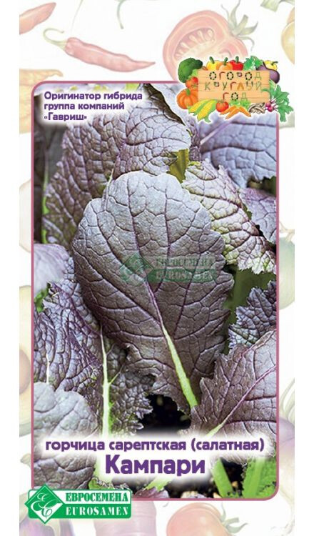 Каждая хозяйка хотела бы иметь свежую зелень в любое время года. Имея дачу или собственный огород можно баловать семью витаминными салатами на протяжении весенне-летнего периода. В зимнее же время нехватка витаминов и питательных веществ чувствуется особенно остро, поэтому все большей популярностью пользуются домашние мини-огороды на подоконниках и лоджиях, где любители земледелия умудряются вырастить почти весь дачный ассортимент овощей. Огород круглый год - модный тренд, занятие приятное и полезное, всегда под рукой пряная зелень к столу — и не нужно задумываться, как сохранить ее в свежем виде. Эта неторопливая работа по уходу за мини-огородом успокаивает, отвлекает от суеты и хлопот, к тому же растения создают особый микроклимат в помещениях, увлажняя сухой воздух и очищая его. Кампари - горчица салатная со слегка острым, горчичным вкусом, с высоким содержанием биологически активных веществ. Используется для приготовления салатов, бутербродов и гарниров к мясным и рыбным блюдам.