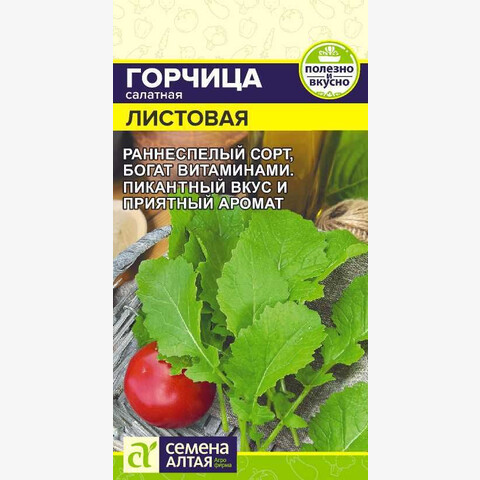• Раннеспелая холодостойкая культура. Зелень горчицы со слабоострым вкусом напоминает столовую горчицу. Содержит много калия, витамина С и каротина. Раннюю нежную зелень (16-19 дневную) используют на салаты, когда нет или мало другой зелени. Переросшую, с огрубевшими листьями горчицу используют как сидерат – перекапывают вместе с растениями. Место посадки: не требовательна к почвам, оптимальными являются рыхлые удобренные грунты. Лучшие предшественники - картофель, томат, лук, горох, огурцы. Не размещать после крестоцветных (капуста, редис, руккола) Освещение: обильное, плохо переносит затенение Предпосевная подготовка: не проводится Сроки посева: первый посев проводят при прогревании почвы до +5°С (апрель-май). Чтобы получать зелень в течение продолжительного времени, семена высевают несколько раз за сезон с интервалом 5-10 дней. Для получения ранней зелени можно выращивать в неотапливаемых теплицах, а также в качестве комнатной культуры Посев на рассаду: не предусмотрено Посев в грунт: высевают ранней весной рядами, расстояние между рядами 18-20 см, глубина заделки семян 1,0-1,5 см. Всходы устойчивы к небольшим заморозкам Пикировка/перевалка: не предусмотрена Уход: заключается в регулярном рыхлении, прополке, поливе и подкормке
