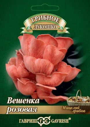 Один из самых экзотических и быстрорастущих видов вешенки. Ценный продукт для диетического питания: содержит все необходимые организму человека вещества (белки, жиры, углеводы, минеральные соли, витамины), имеет низкую калорийность, даже в небольшом количестве вызвает чувство сытости. Регулярное употребление вешенки способствует снижению уровня холестерина и риска раковых заболеваний. Шляпка диаметром 3-10 см, розовая. Ножка 1-4 см высотой, плотная, к основанию сужается. Мякоть нежная, мясистая, с приятным грибным ароматом и вкусом. Используют для приготовления супов, пирогов, жарки и тушения, а также заготавливают на зиму (сушат, солят, маринуют). Советы по разведению: Выращивают как на открытом воздухе, так и в закрытых помещениях при температуре от 10 до 30°С. Благоприятное время для высадки грибов на древесную основу в природных условиях — с апреля по сентябрь, в помещении — в течение всего года. В качестве древесной основы используют свежее (1 месяц после срубки), влажное (влажность минимум 50-60 %) бревно лиственных пород (бук, тополь, береза, ива, клен, рябина или плодовые деревья) без признаков гнили, с корой и без веток. Если древесина сухая ее замачивают в воде на 2-3 дня, избытку воды дают стечь. Пропитанную древесину помещают в теплое, проветриваемое помещение на несколько дней. Выращивание и уход: I этап - 1. В подготовленном бревне просверливают отверстия диаметром 0,8 см и длиной 4 см в шахматном порядке на расстоянии около 10 см друг от друга. 2. Вставляют грибные палочки в отверстия до упора (операцию проделывают в стерильных перчатках или продезинфецированными спиртом руками). 3. Оборачивают бревно полиэтиленовой пленкой, сделав небольшие отверстия для доступа воздуха. 4. Помещают бревно в темное влажное помещение и оставляют обрастать мицелием. При температуре 20 °С бревно обрастает 2 месяца, при температуре 20 °С – 1,5 месяца. При температуре выше 40 °С мицелий может погибнуть. Бревна заросли если на поверхности, в местах заражения, виден белый мицелий. II этап - 1. В затененном и защищенном от ветра месте в саду выкапывают лунку глубиной 10-15 см, дно лунки увлажняют. Можно выращивать на балконе, посадив древесину после оброста мицелием в кадку с землей. 2. Обросшее грибницей бревно закапывают вертикально одним концом на глубину до 1/3-1/2 длины. Обсыпают почву вокруг бревна древесной золой (для борьбы с улитками). Оптимальная температура для образования плодовых тел – от 20 до 28°С. 3. В сухую погоду почву вокруг бревна поливают каждую неделю из расчета 5л на 1м?. Поздней осенью бревно выкапывают с частью земли и переносят в помещение с положительной температурой. 4. Следующей весной бревно с почвой высаживают на постоянное место и регулярно увлажняют, сначала 1 раз в неделю, а во время фазы созревания — каждый день. Если полив прекратить, вешенка будет расти только в сырую погоду. Плодоношение: Первый урожай при выращивании на мягкой древесине (тополь, береза, ива) через 3 месяцев, на твердой (бук, клен, рябина) – через 5 месяцев. Плодоношение волнами, до 3-4 лет на мягкой древесине, 5-7 лет на твердой. Урожайность: От 20 до 50% от веса бревна. Состав: Мицелий грибов "Вешенка розовая" на древесных палочках. Невскрытый пакет хранить в сухом прохладном месте, возможно в холодильнике при положительной температуре.