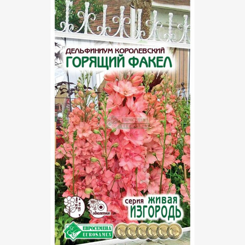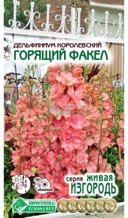 Дельфиниум королевский – элегантное, декоративное растение, имеющее прямое отношение к семейству лютиковых, его еще именуют шпорником или живокостью. Данное растение обрело огромную популярность у садоводов по причине того, что оно отличается неприхотливостью и холодостойкостью, яркими окрасками крупных цветков, собранных в плотные кистевые соцветия, и продолжительным периодом цветения. У дельфиниума Горящий факел - фантастический окрас цветков, они изысканной ярко-лососевой окраски с более темными штрихами, смотрятся восхитительно, от них невозможно оторвать свой взгляд. Удивительно, как же щедра наша природа, одарившая растения такими чудесными окрасками!