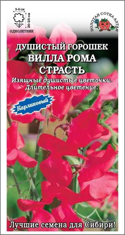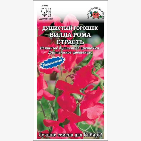 Горошки серии Villa Roma характеризуются обилием соцветий и продолжительным цветением, а компактная форма куста позволяет использовать их не только для создания бордюров, клумб и рабаток, но и для посадки в вазоны, горшки, подвесные кашпо и ящики с последующим оформлением патио-двориков, террас и веранд, балконов и окон. Изящные душистые цветочки-мотыльки малиново-красного цвета собраны в кисти по 3-4 шт. Прекрасно подходит для составления миниатюрных букетов. Сочетание карликовых и высокорослых сортов позволит каждый уголок сада сделать благоухающим.